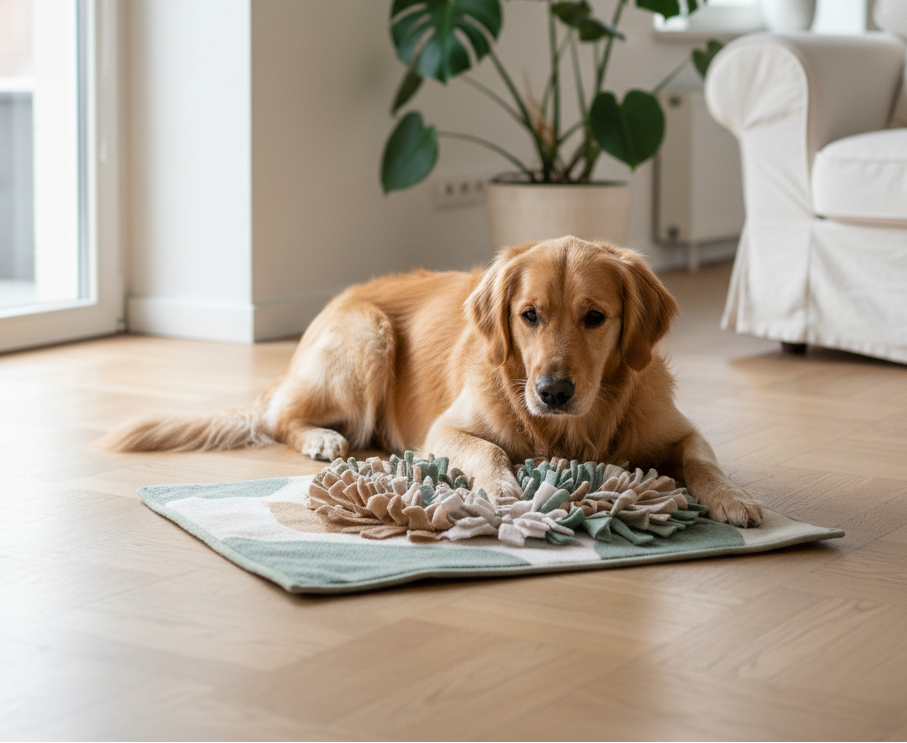 Porque 15 minutos de olfato equivalen a una hora de carrera. En DeepSniff no solo vendemos alfombras, diseñamos el momento de calma y felicidad que tu perro merece.